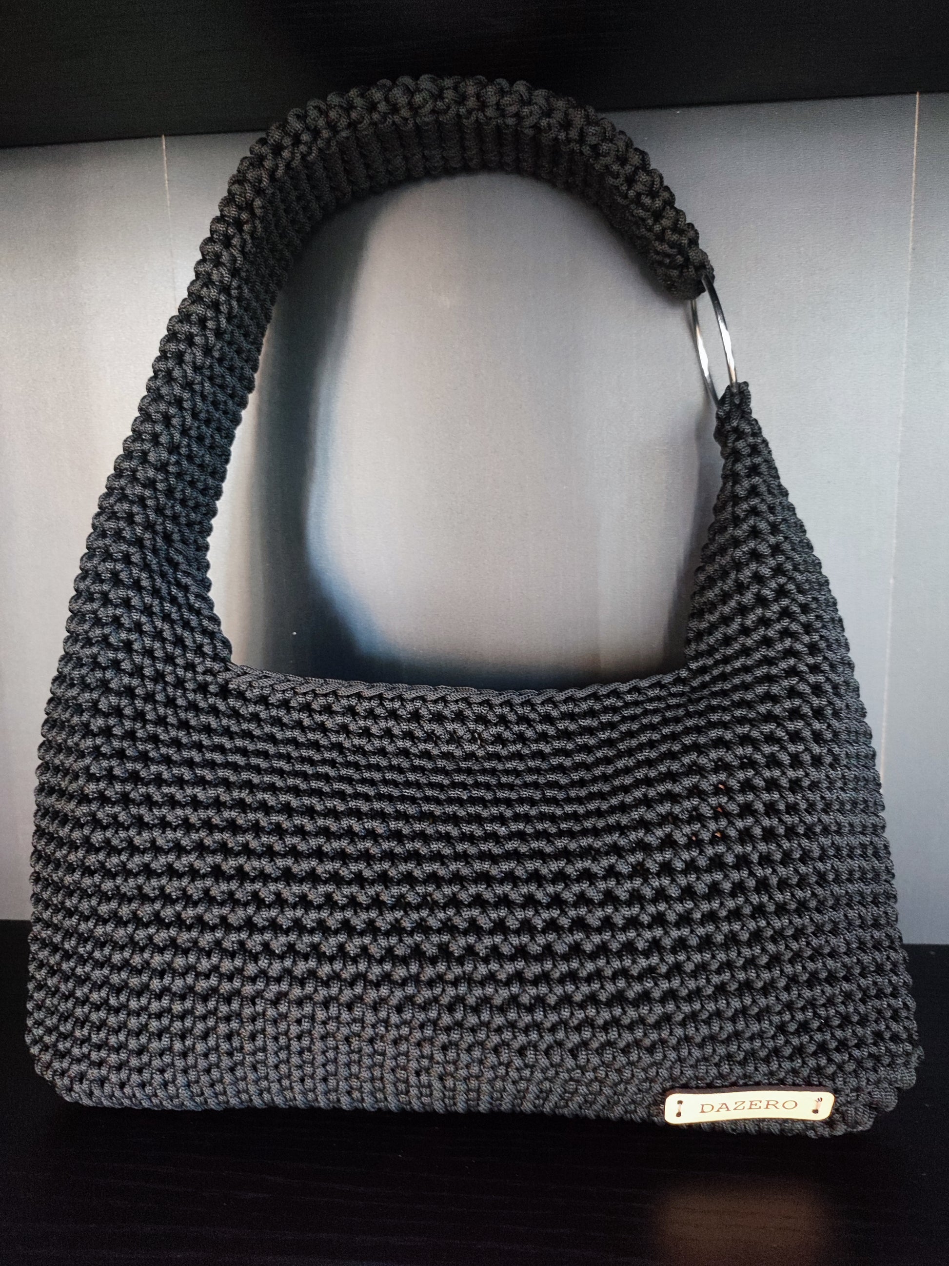Borsetta a spalla con anello, colore NERO