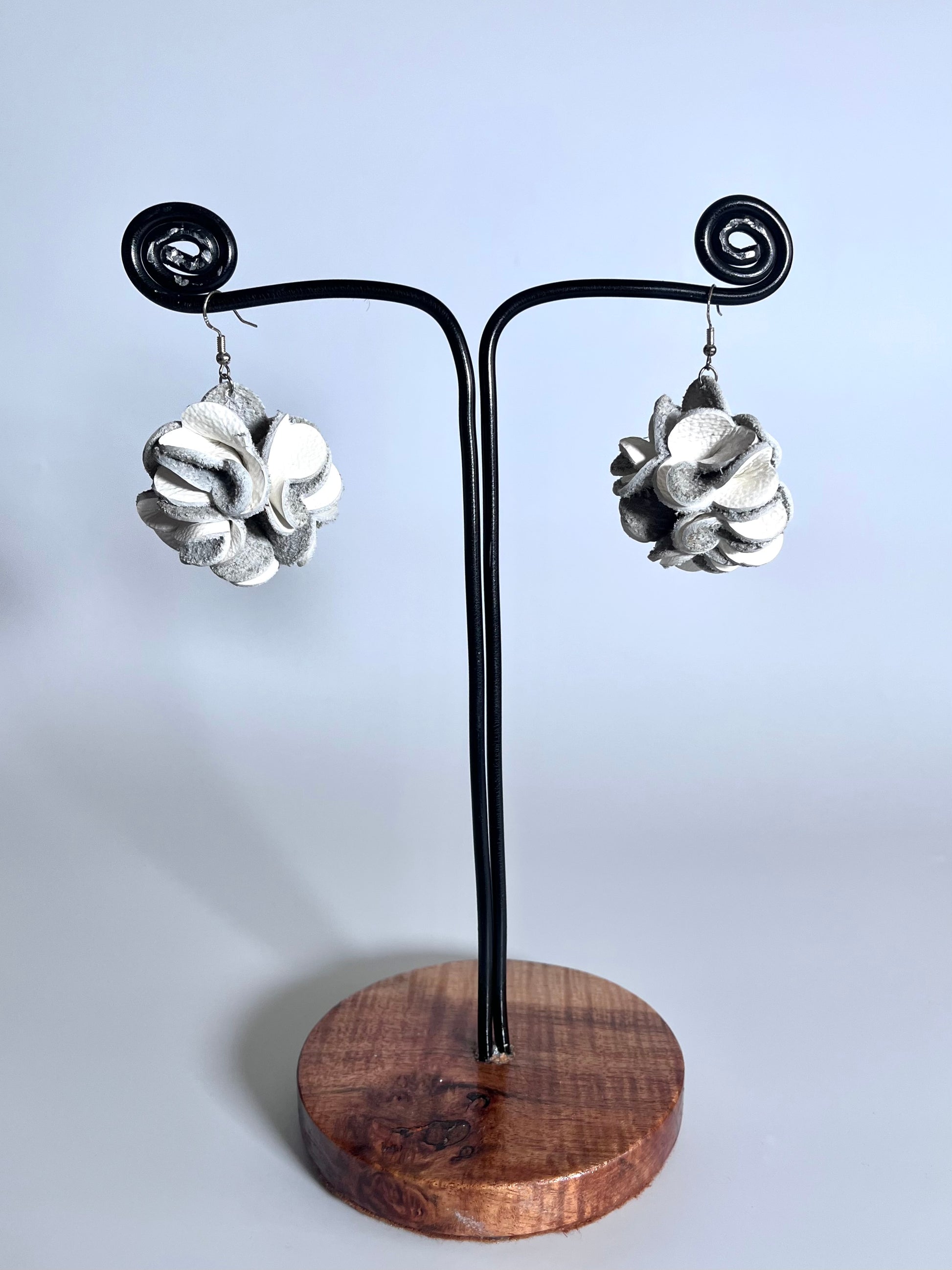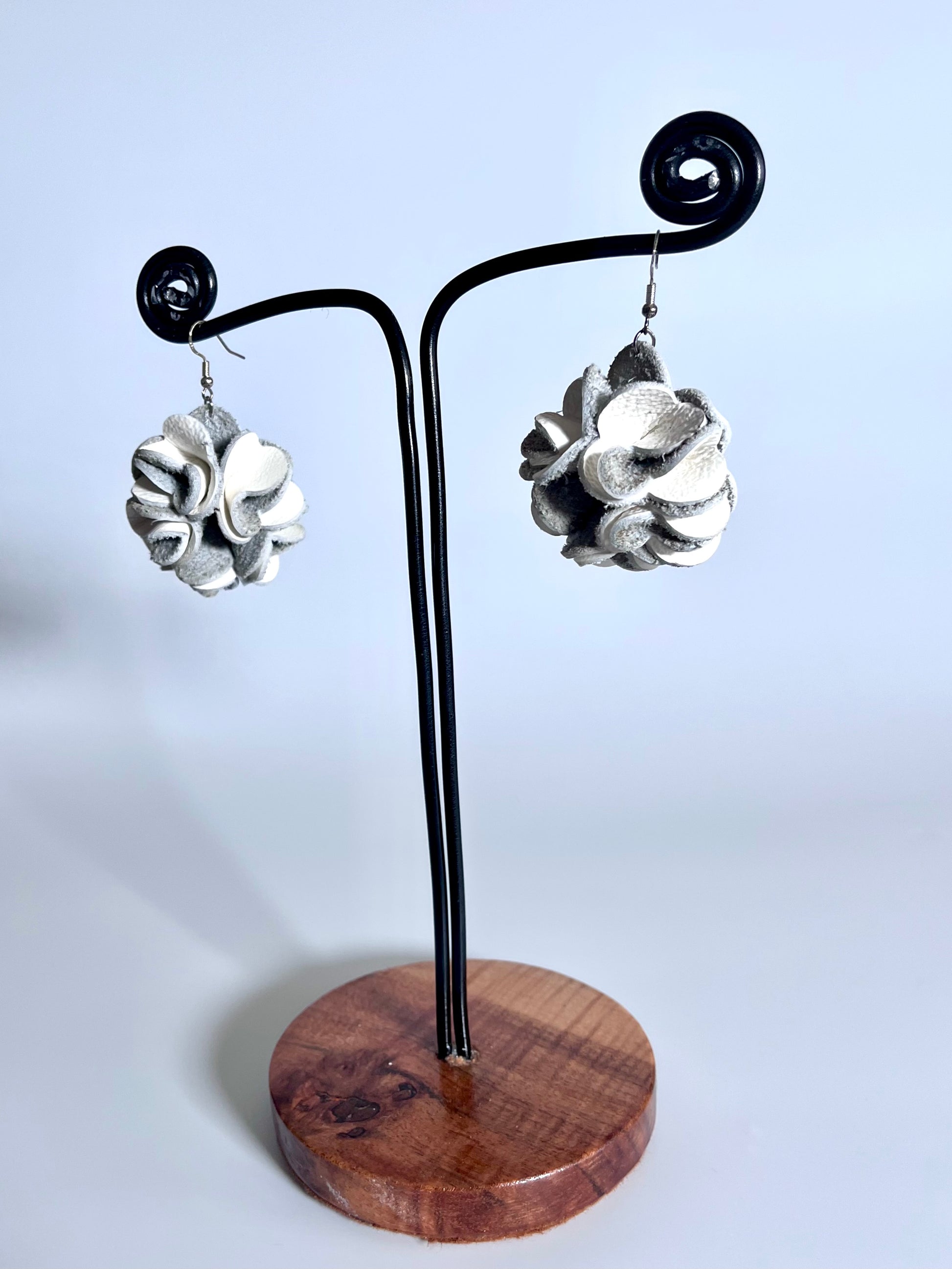Orecchini artigianali a fiore in pelle bianca