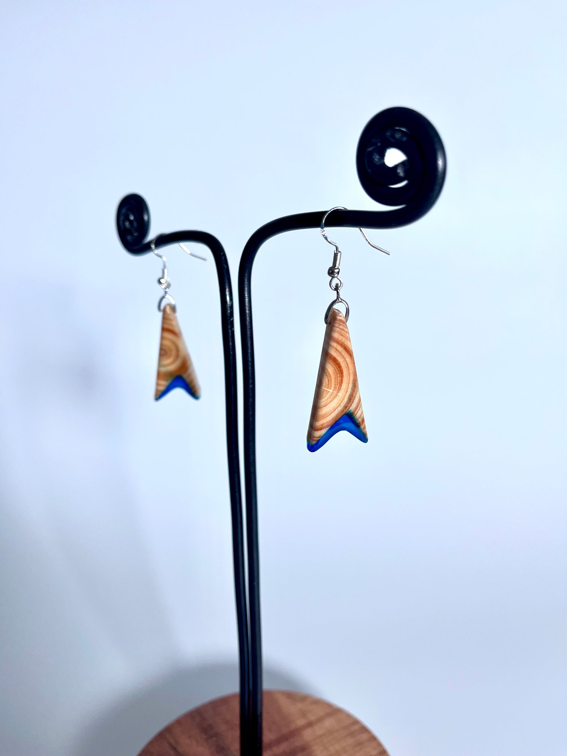 Orecchini artigianali in legno e resina blu