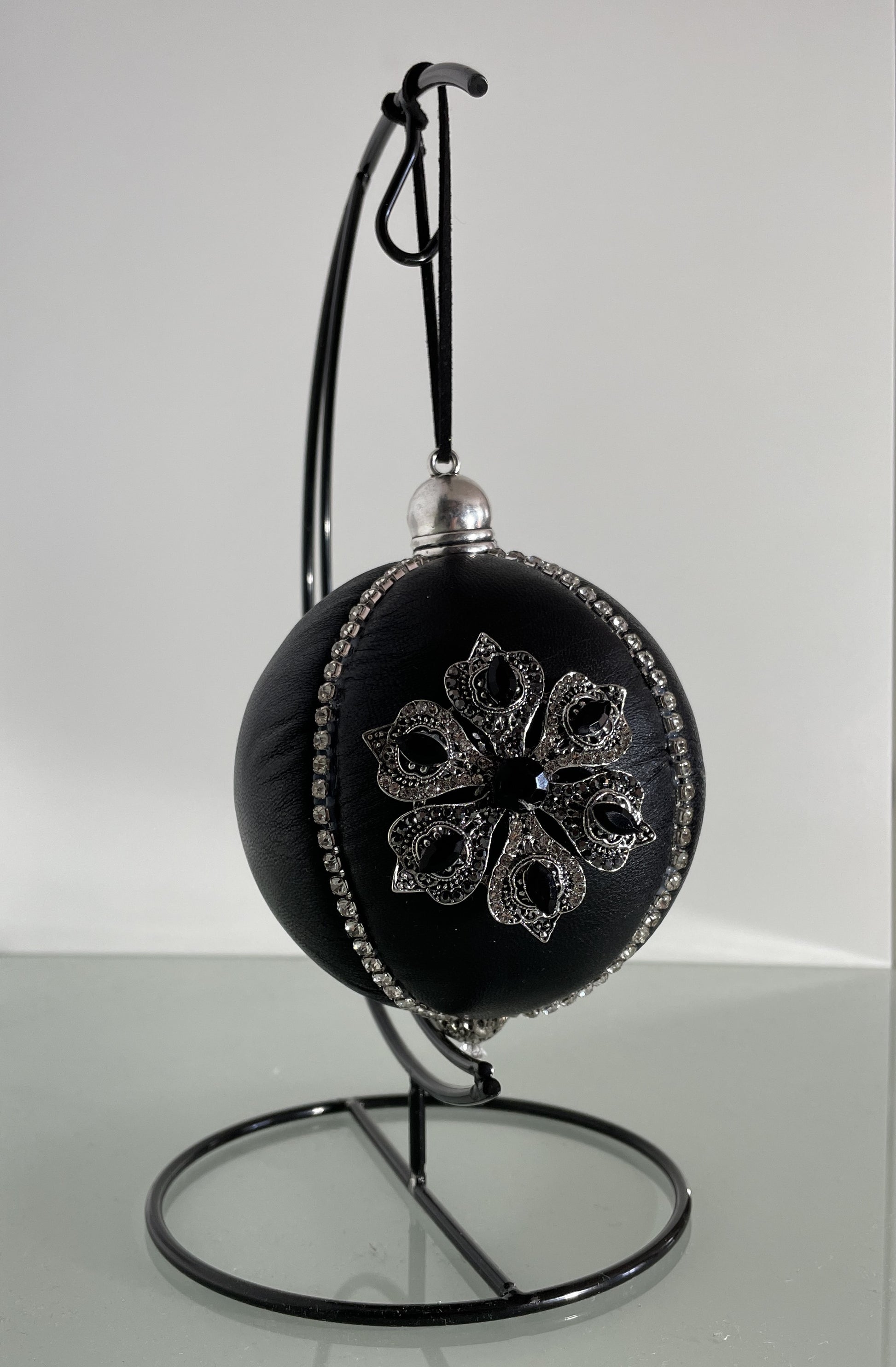Pallina di Natale in pelle Nera con decorazione
